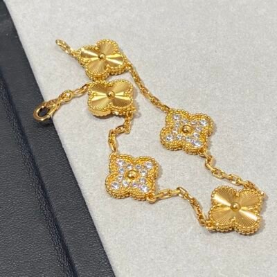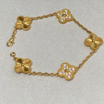 $30.33 – $35.00Price range: $30.33 through $35.00CLOVER BRACELET 5 MOTIFS GOLD DIAMOND