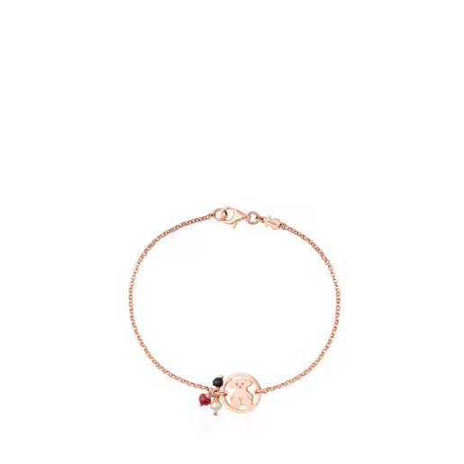 Rose Vermeil Silver Camille Bracelet with Onyx, Ruby and Pearl.TOUS silver