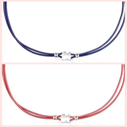 Blue and pink sweet doll elastic necklace.TOUS Silver
