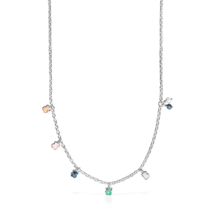 Mini Color Necklace in Silver with Gemstones and Pearl.TOUS Silver