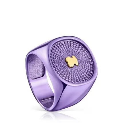 Silver TOUS amethyst Bear Signet Ring Bold Pattern