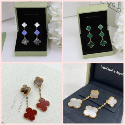 Van Cleef & Arpels Four Leaf Clover Earrings Vintage Alhambra 2 Flowers 3 Flowers Earrings Fashion Jewelry