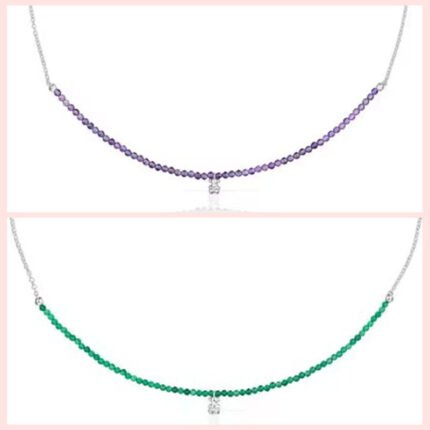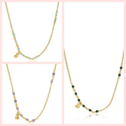 Sliver TOUS Bold Bear necklace with agate and bear charms