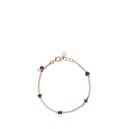 Silver TOUS Rose Vermeil Silver Motif Bracelet with Spinel, Ruby and Onyx