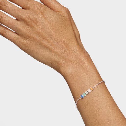 Mini Color Bracelet in Silver with Gemstones,TOUS Silver
