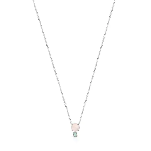 Mini Color Necklace in Silver with Pink Quartz and Amazonite.TOUS Silver