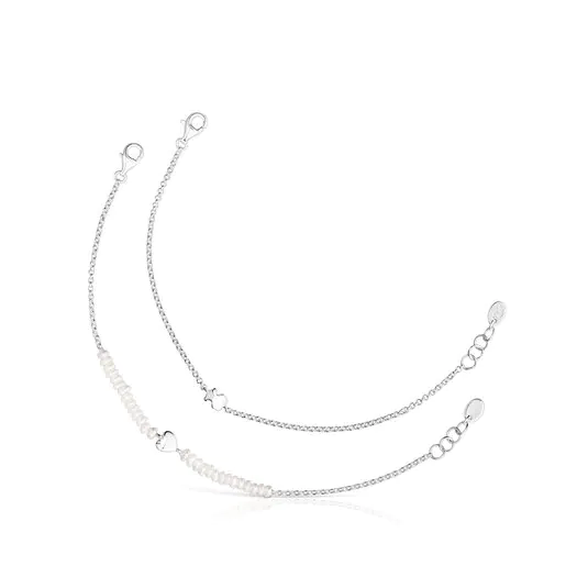 Silver and Cultured Pearl Mini Icon Heart and Bear Bracelet Set.TOUS Silver