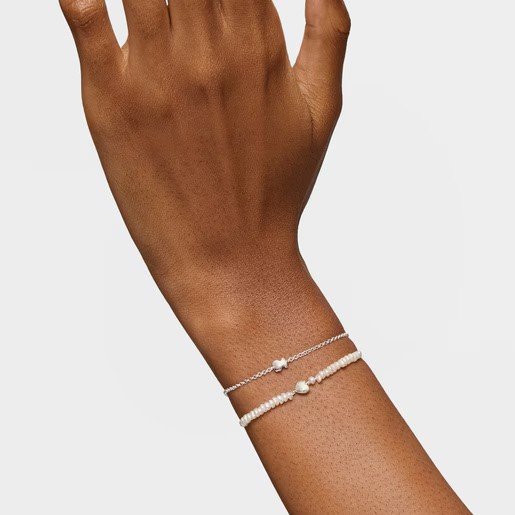 Home Silver TOUS Bracelet Silver and Cultured Pearl Mini Icon Heart and Bear Bracelet Set.TOUS Silver