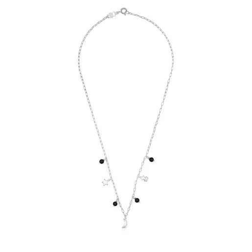 TOUS Magic Nature necklace with 6-8 mm star, moon and bear and four 4 mm onyx. Necklace length: 43 cm. Production technique: Casting.TOUS Silver