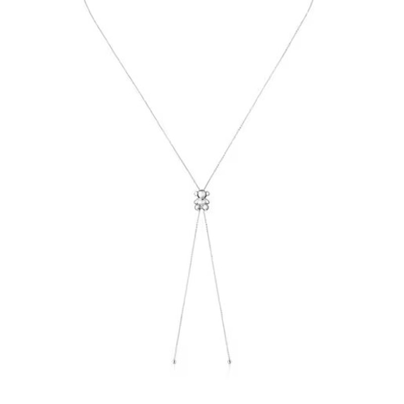 Silver TOUS long necklace in sterling silver with bear motif. Sliding clasp with bear motif. TOUS Bold Bear