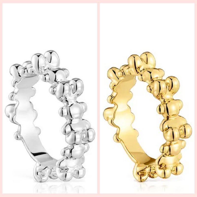 Silver TOUS Bold Bear medium Ring with 18kt gold plating over silver and bear motifs
