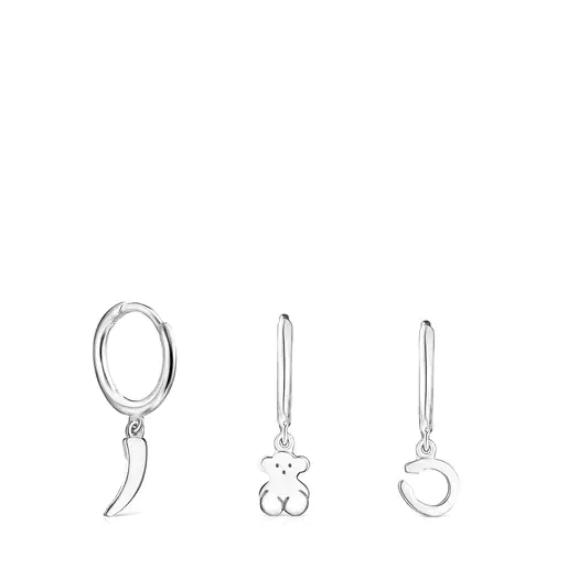 Set of three silver Bold Motif motif Earrings.TOUS Silver
