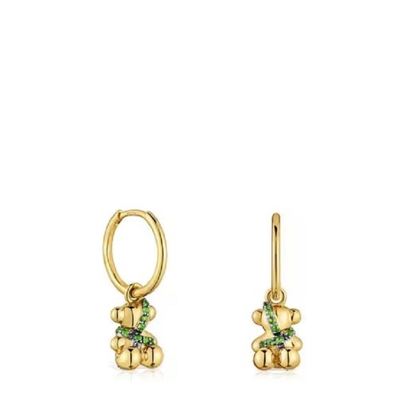 Home Silver TOUS Earrings Silver TOUS Short 18kt gold-plated silver bear Hoop earrings with chrome diopside Lligat