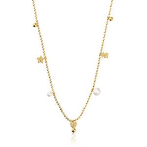 Home Silver TOUS Necklace Silver TOUS Short necklace with cultured pearls and TOUS grain pattern