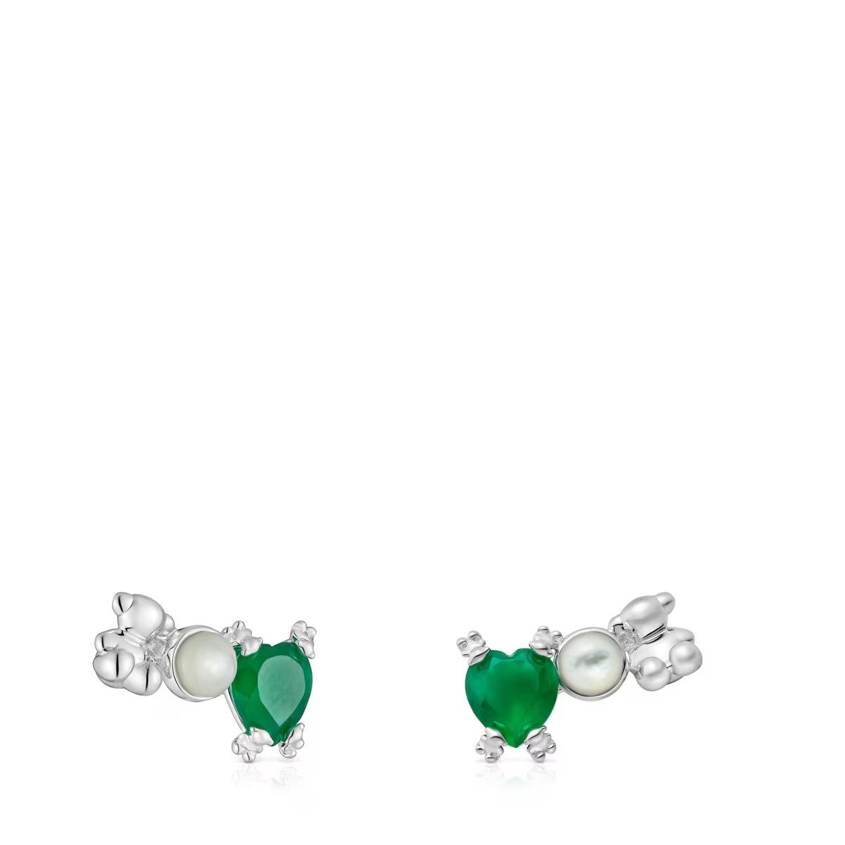 Home Alloy TOUS Earrings Alloy TOUS Bear Earrings Spanish Style Fashion Jewelry Climber Earrings With Silver Bear, Mother Of Pearl And Chalcedony Color Pills