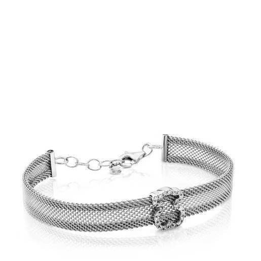 TOUS Icon mesh bracelet in steel and white gold with diamond bear motif.TOUS Silver