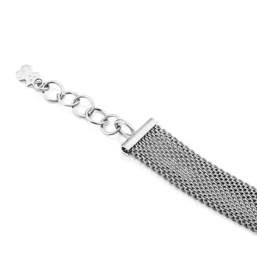 TOUS Icon mesh bracelet in steel and white gold with diamond Bera motif.TOUS Silver