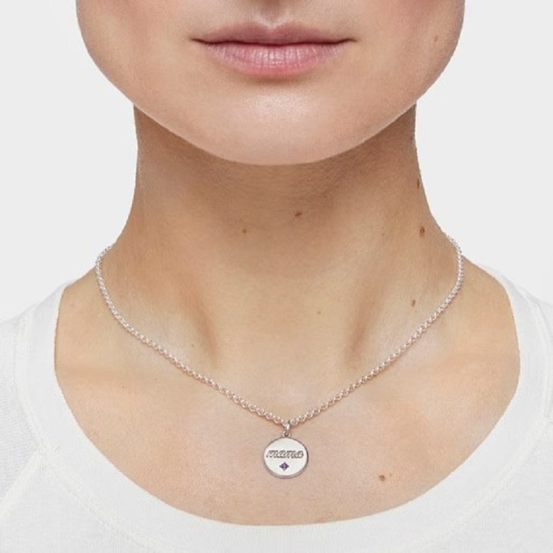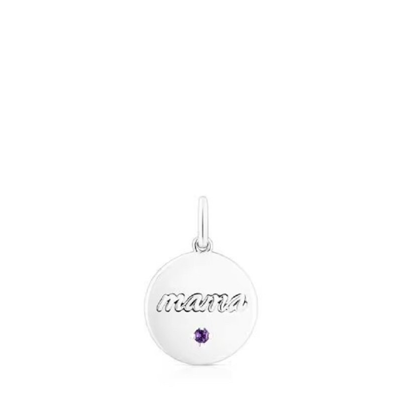 The TOUS Mama silver jewelry collection is inspired by tenderness expressed through different handwritten fonts and includes jewelry such as this sterling silver pendant medallion with amethyst. Give the gift of jewelry with a handwritten message that almost comes straight from you.