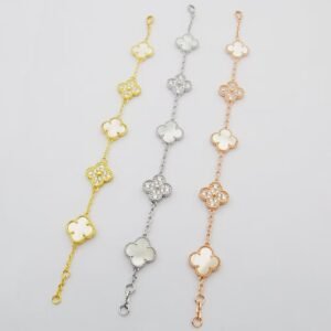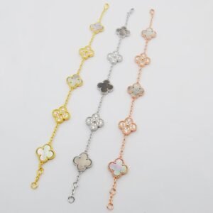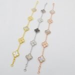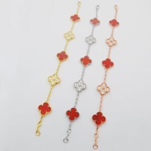 🍀VCA vintage Alhambra four-leaf clover laser flash gold carnelian five-flower bracelet has arrived👄Authentic purchase level, high version, high color retention, long-lasting workmanship, complex details, exquisite originality😍The unique design makes people fall in love at first sight, Original top quality diamond-shaped original buckle, exclusive real shot! ! If you like the style, please feel free to contact us, many styles are not linked but can also be purchased