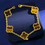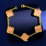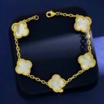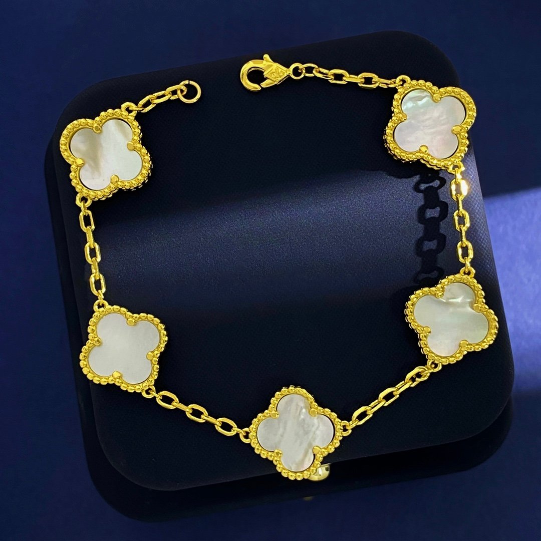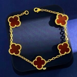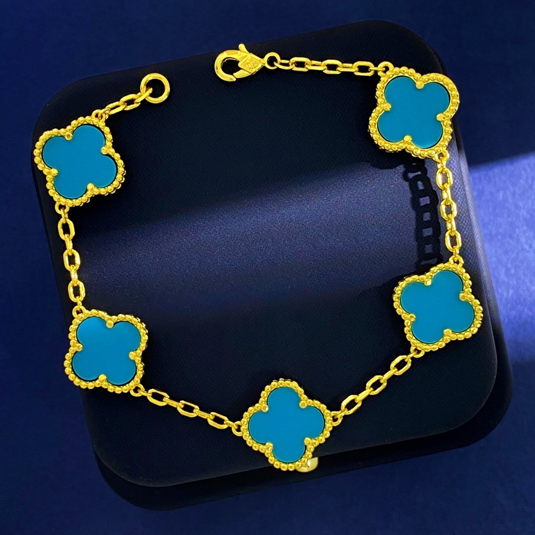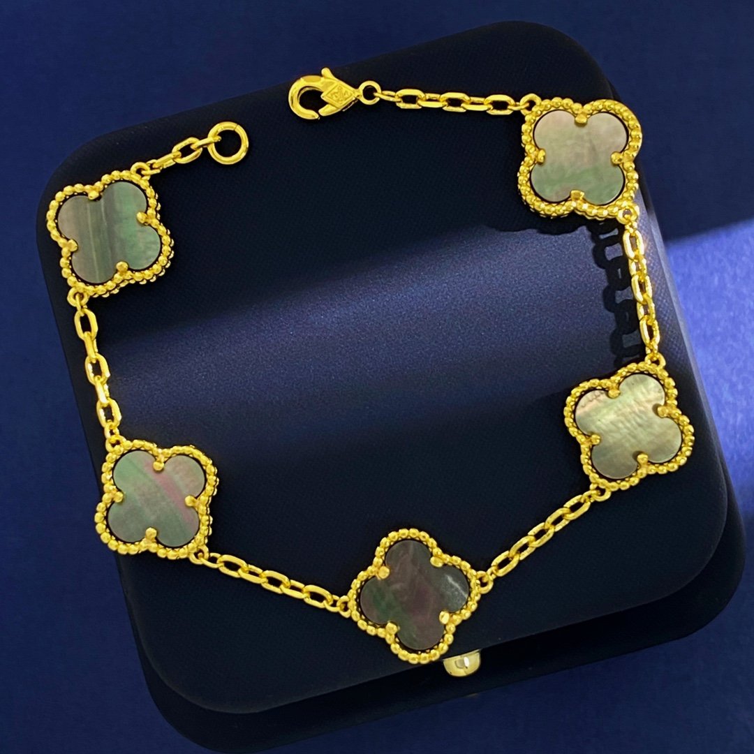 🍀VCA vintage Alhambra four-leaf clover laser flash gold carnelian five-flower bracelet has arrived👄Authentic purchase level, high version, high color retention, long-lasting workmanship, complex details, exquisite originality😍The unique design makes people fall in love at first sight, Original top quality diamond-shaped original buckle, exclusive real shot! ! If you like the style, please feel free to contact us, many styles are not linked but can also be purchased